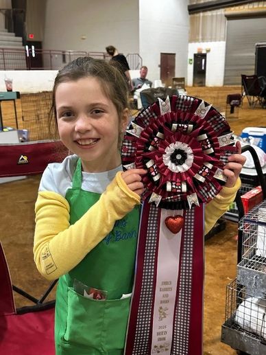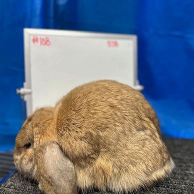 Cupcake did very well at the 2025 ARBA Convention. He won 24th in Broken Senior Bucks out of a class of about 90. Hallie loves this buck and he is a big baby.